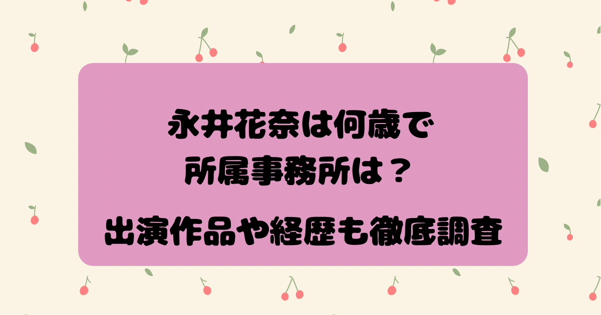 今回の記事では、子役で大活躍中の永井花奈さんの年齢や所属事務所、出演作品などの経歴を時系列でまとめました。